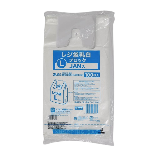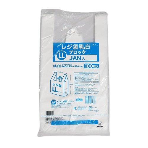| レジ袋 L 半透明 ブロック JAN入 | レジ袋 LL 乳白 ブロック JAN入 | レジ袋 LL 半透明 ブロック JAN入 | レジ袋 3L 乳白 ブロック JAN入 |