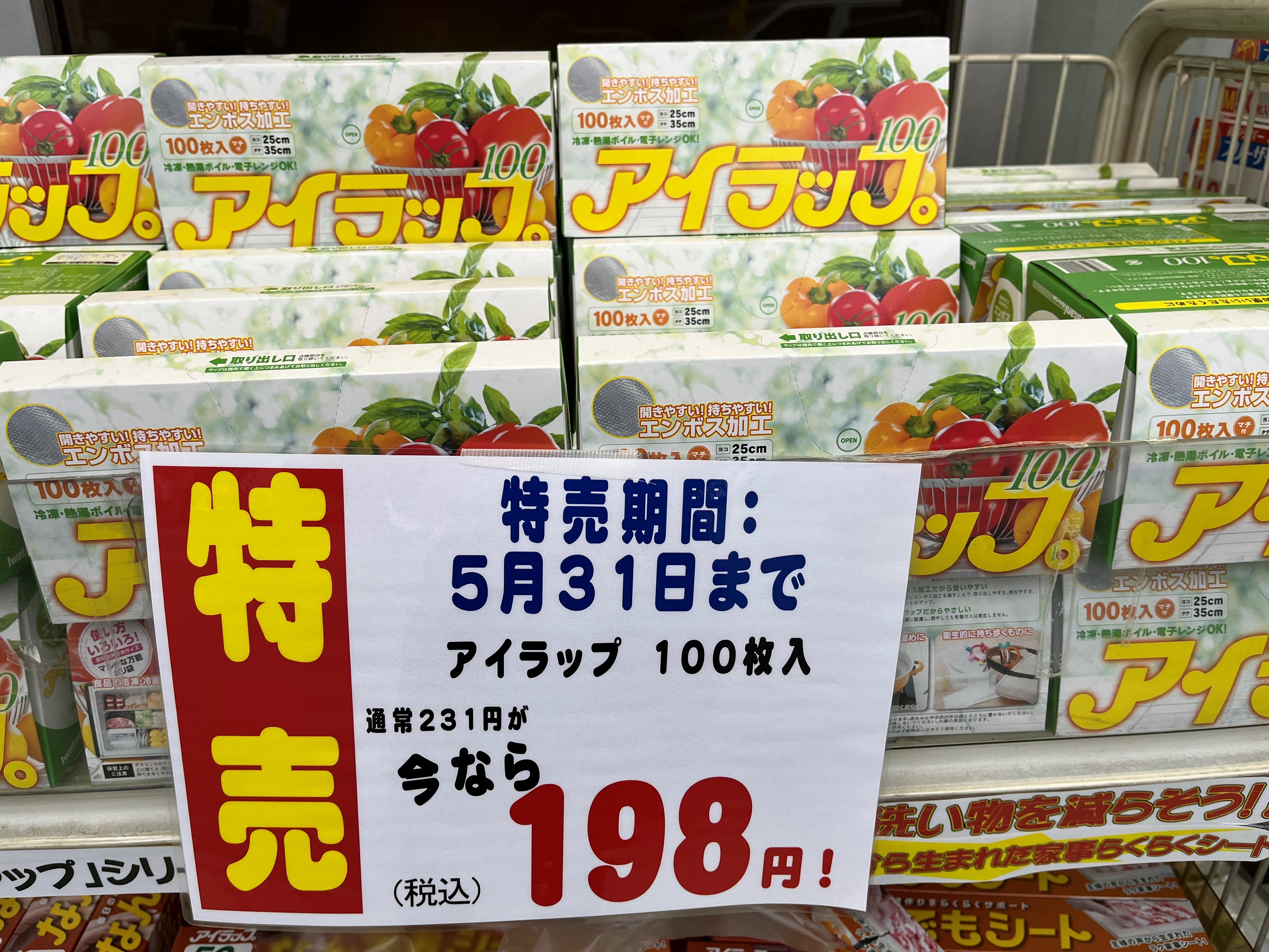 アイラップ100枚入が税込198円!5月31日まで!
