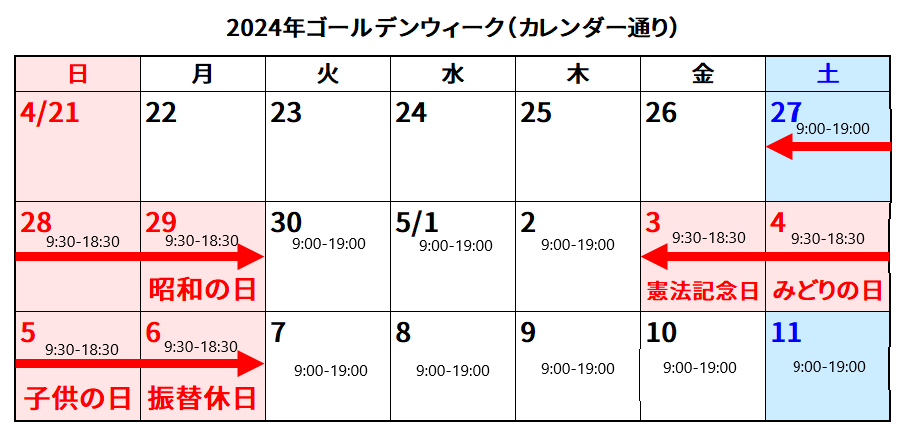 GWの営業日お知らせ(更新日:2024年4月26日)
