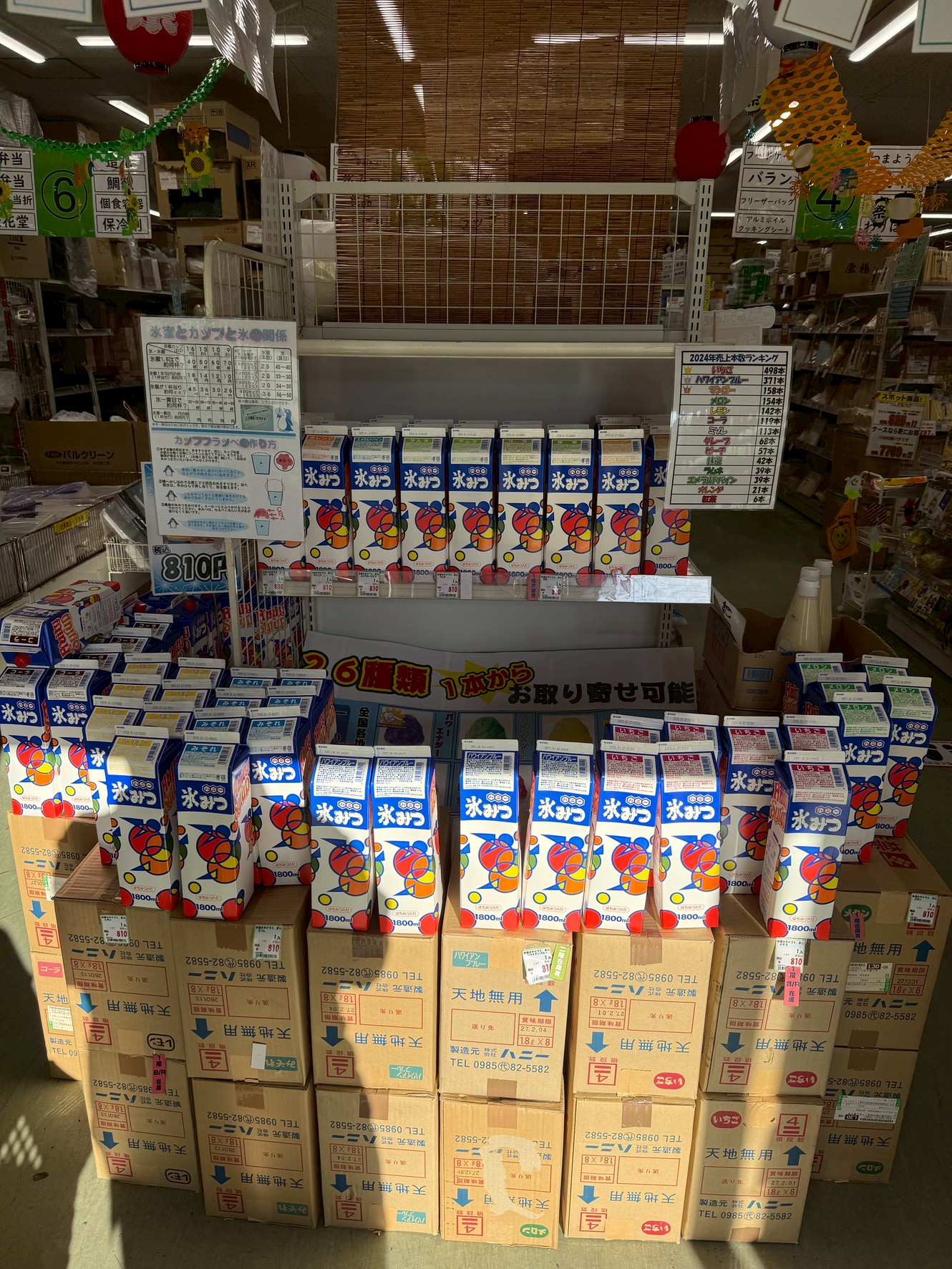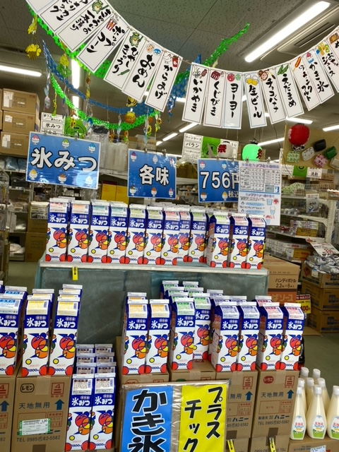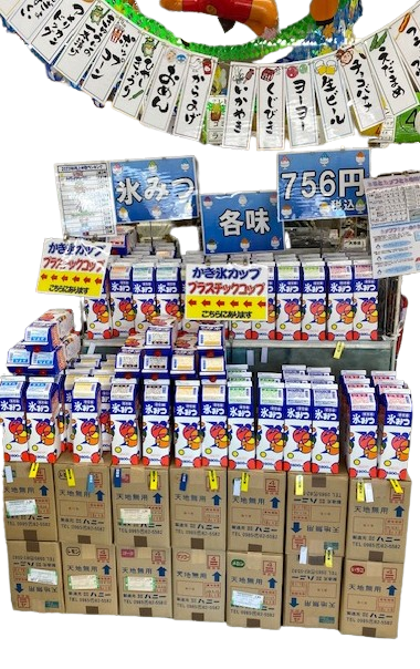 今年も正面に並んでおります、氷蜜!その側面には、お祭りで活躍が期待されるアイテムを!