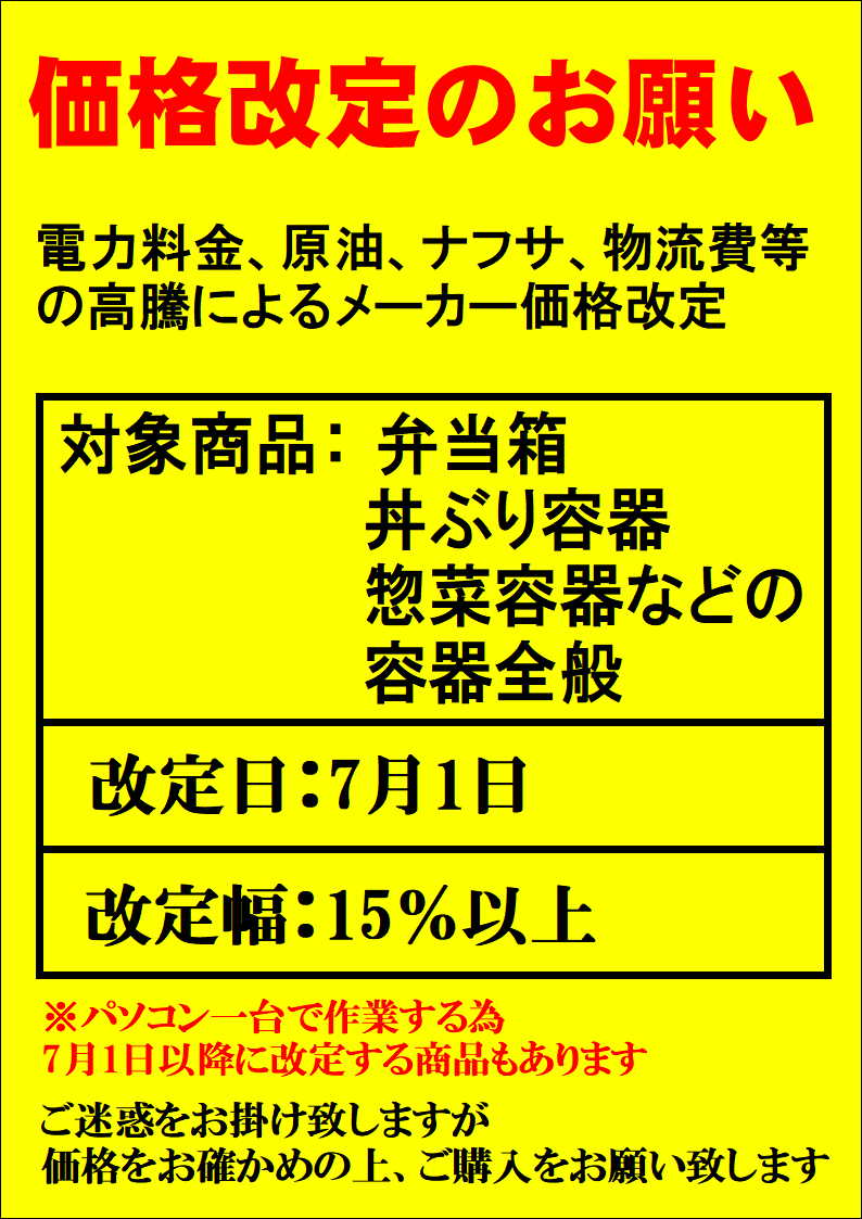 価格改定のお願い((+_+))(更新日:2024年5月9日)