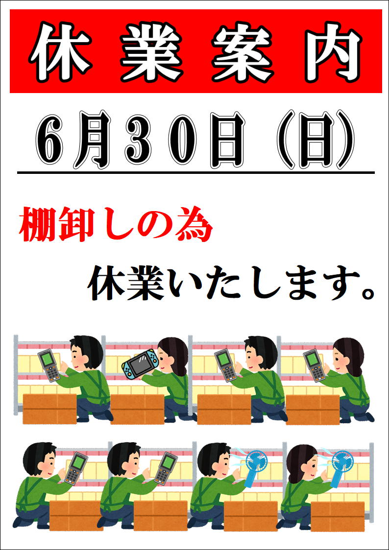年一回の棚卸のお知らせ(更新日:2023年5月29日)