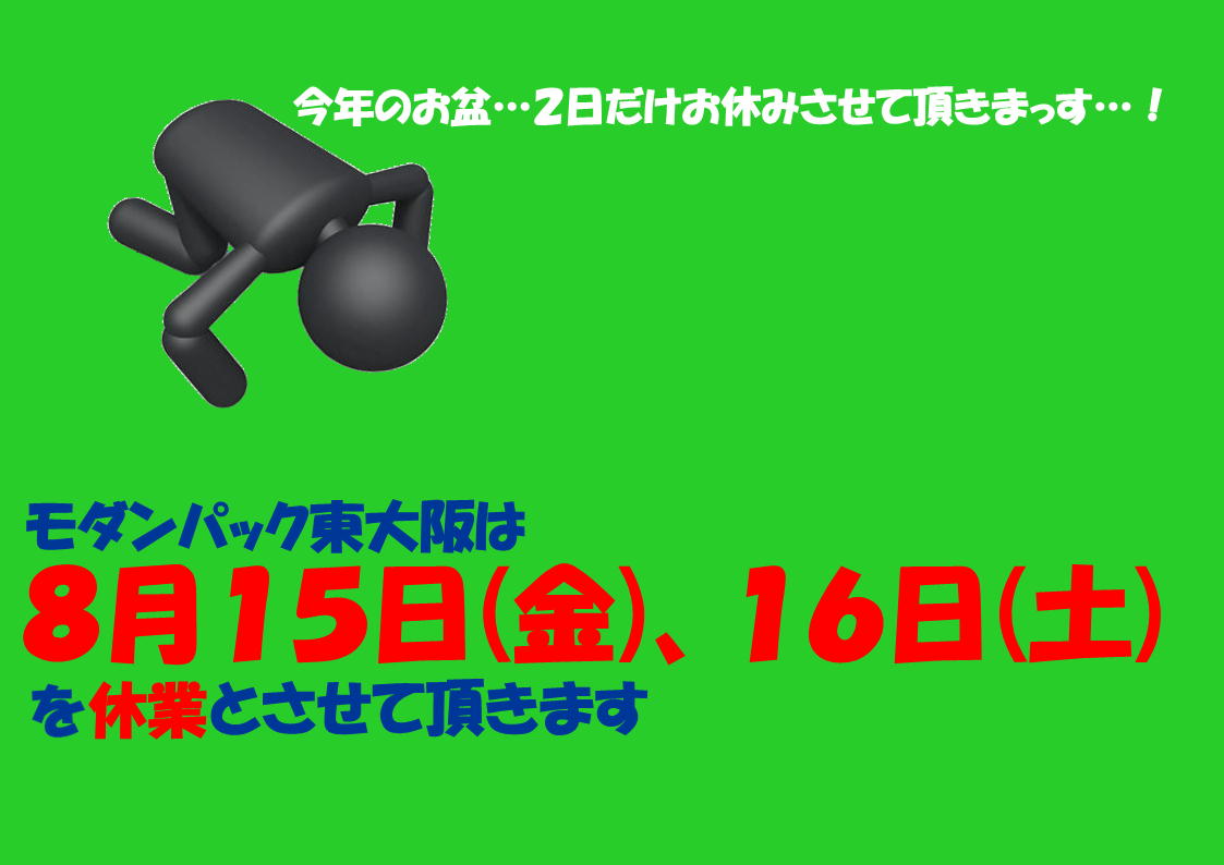 そんな中、モダンパック東大阪は15日16日とお盆休みを頂きます。