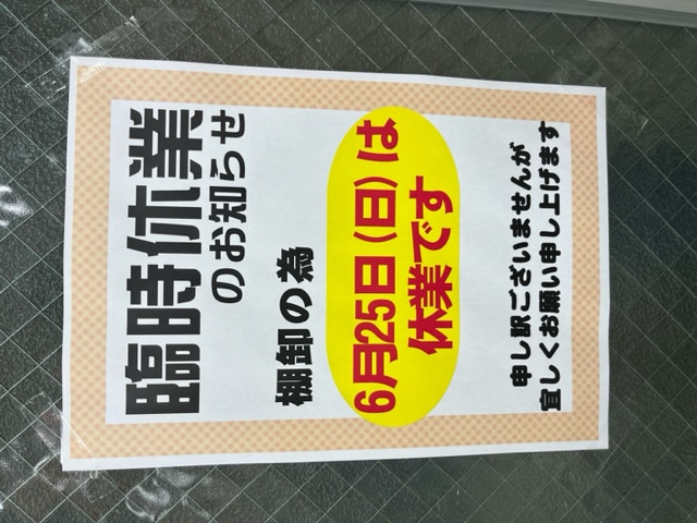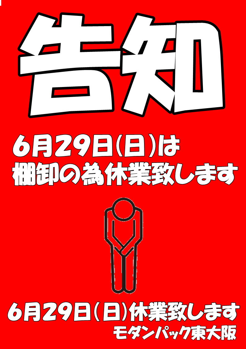 毎年だいたいこの辺り、6月の最終日曜日にモダンパック東大阪店は棚卸を行っており、